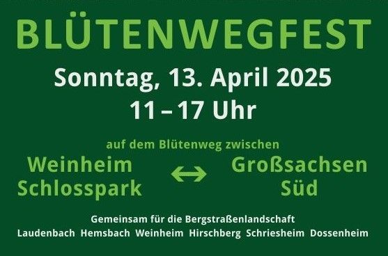 Am 13. April ist es wieder soweit, das beliebte Blütenwegfest findet wieder statt, diesmal zwischen Weinheim und Großsachsen Süd, ein Heimspiel sozusagen.
