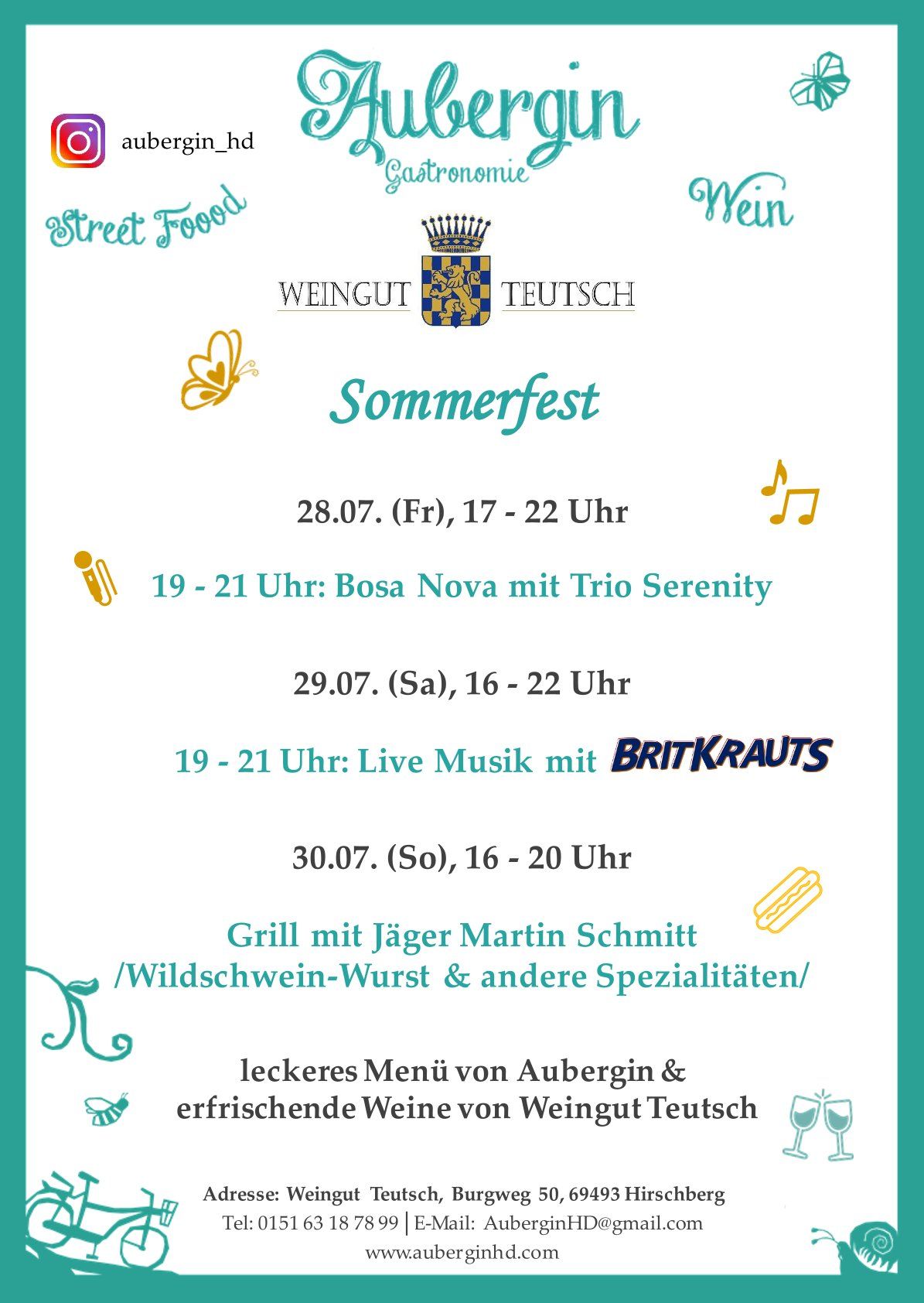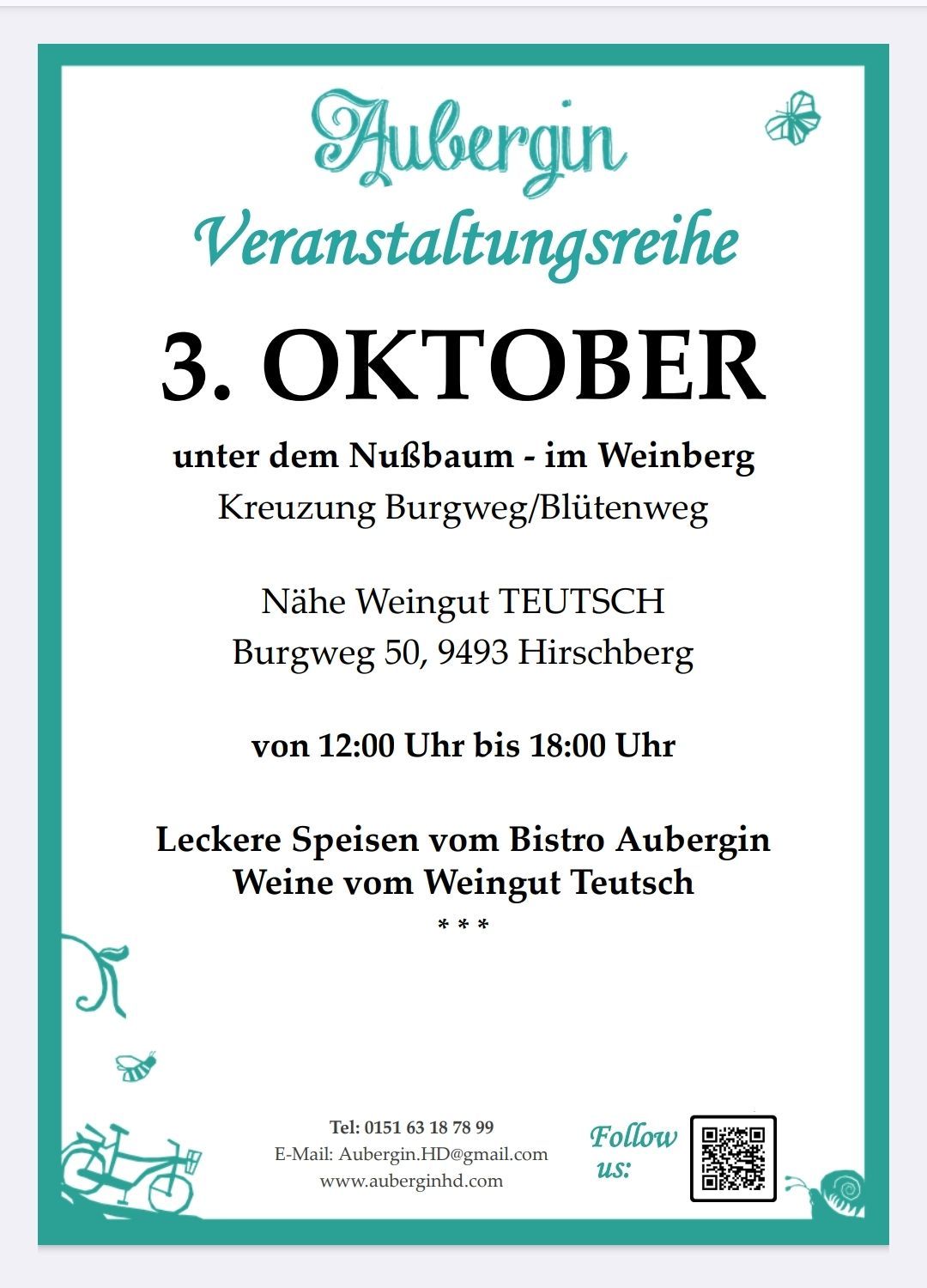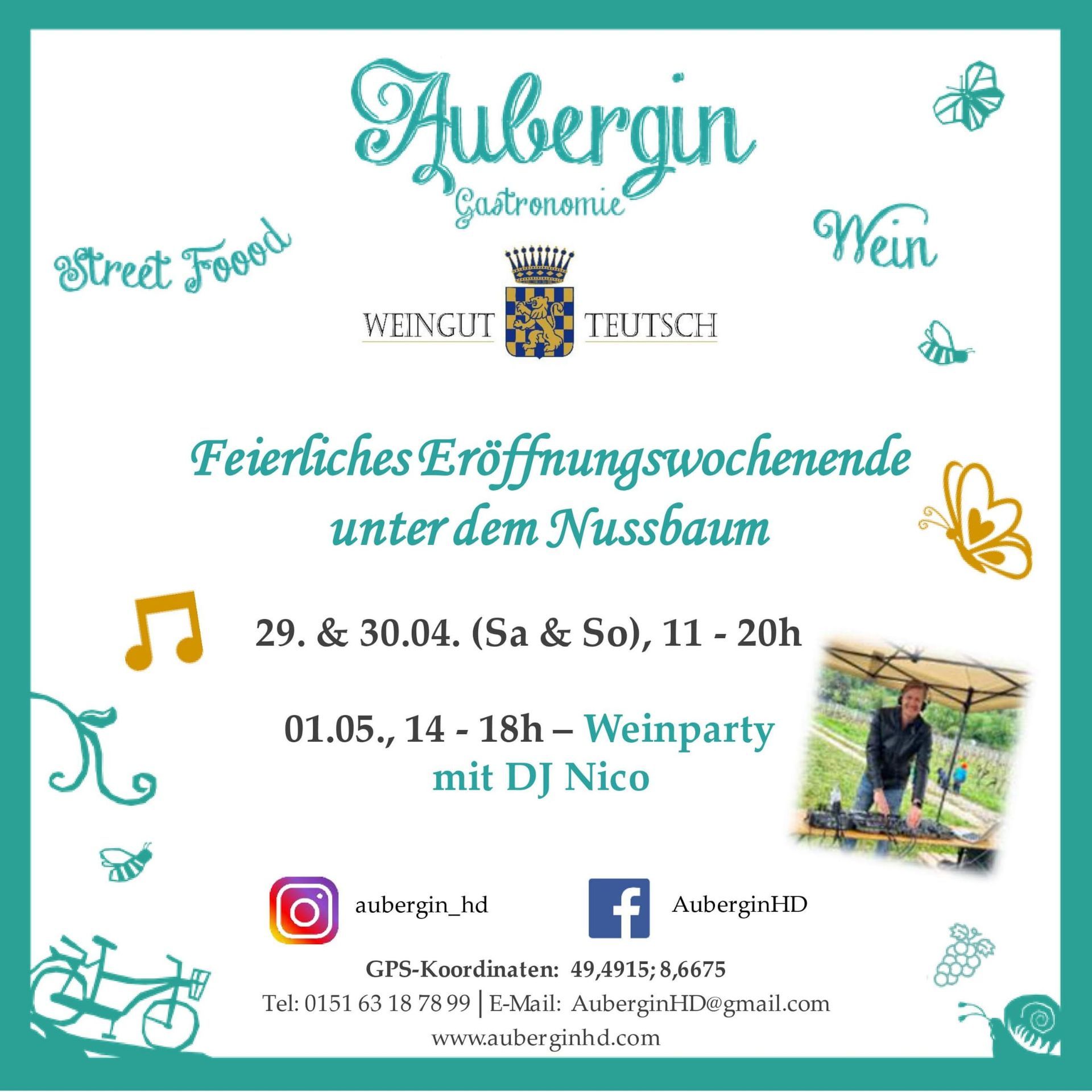 Außerdem finden Sie ab jetzt am Wochenende den Bistrowagen bei uns im Hof. Mehr Infos unter www.auberginhd.com