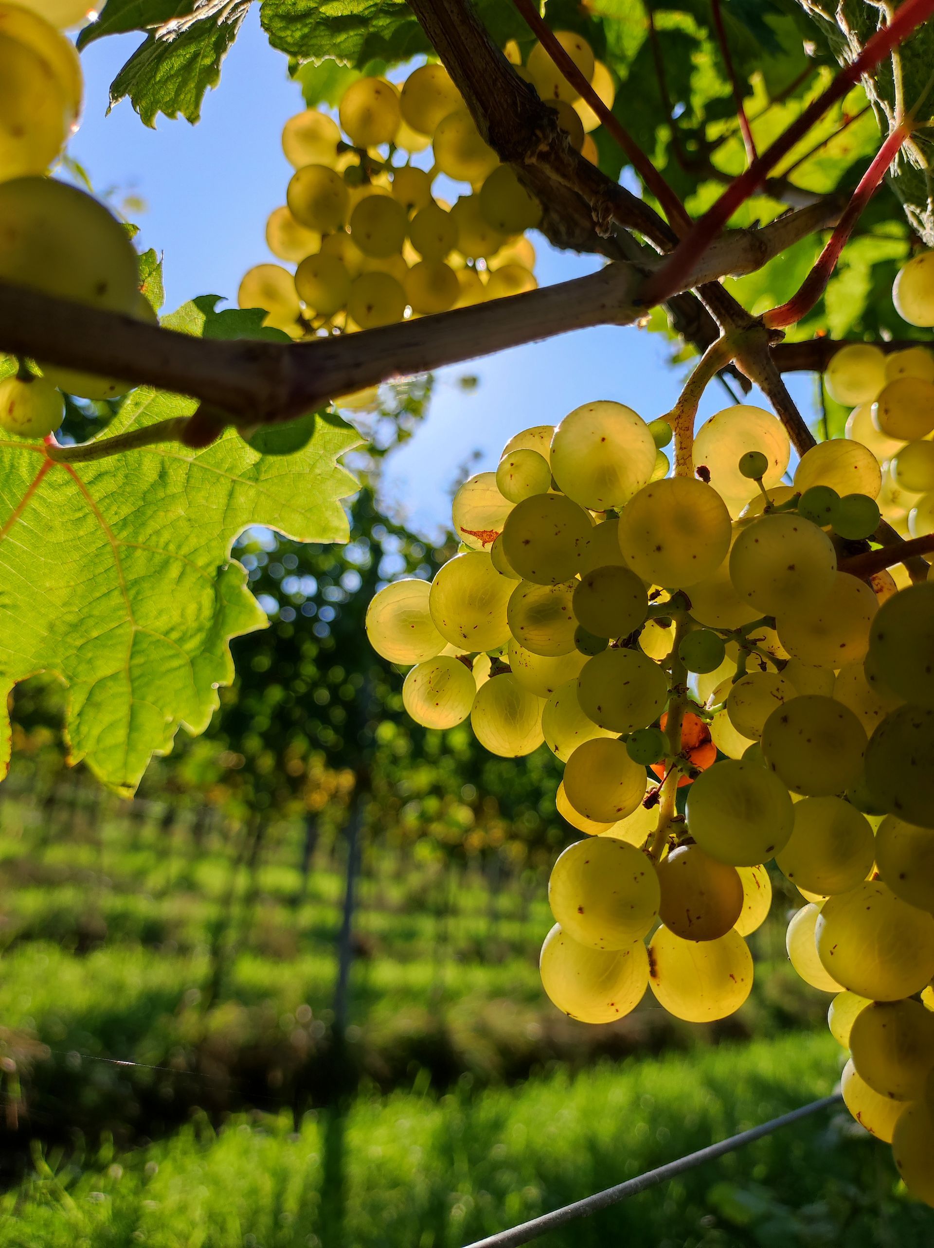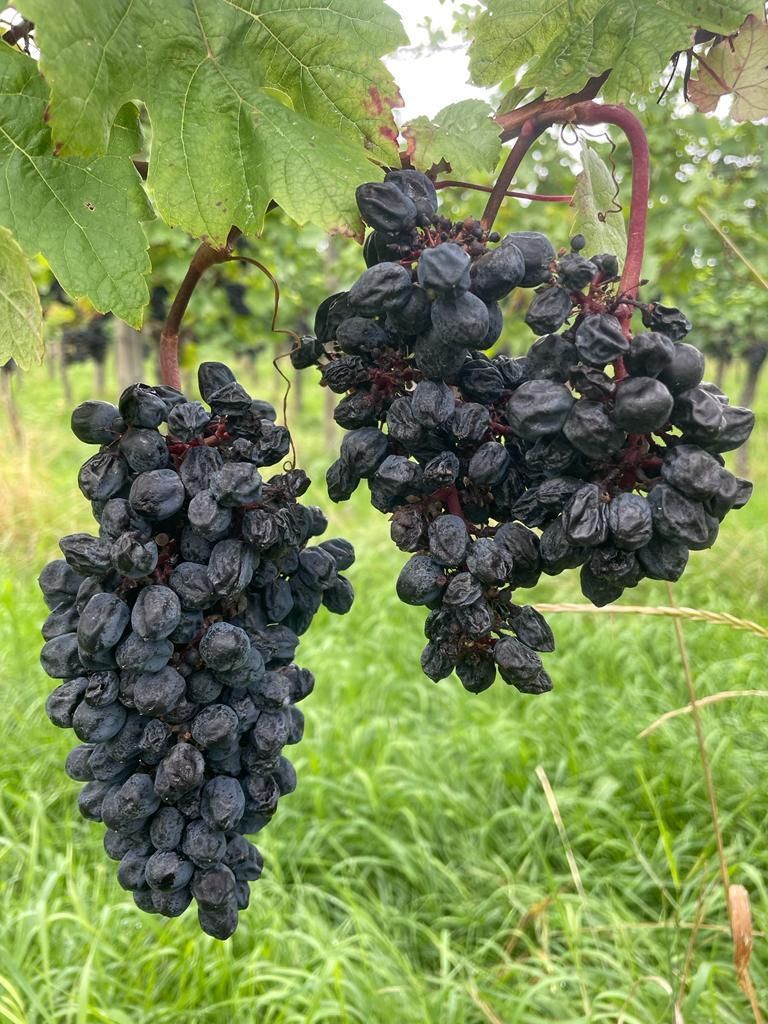 Während sich die anderen Rebsorten mit der Reife noch etwas Zeit lassen sind unsere Dunkelfelder schon wunderbare Rosinen.