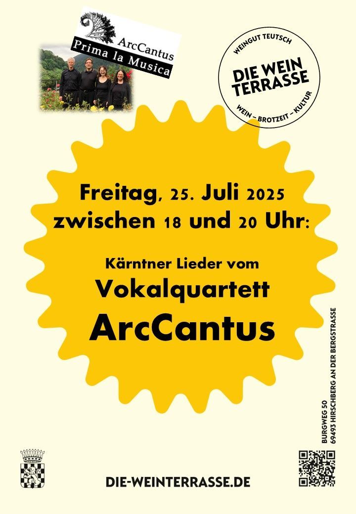 Das Vokalquartett ArcCantus singt Alpenländische Lieder aus Kärnten und der Steiermark, mal heiter, mal nachdenklich, zuweilen keck oder auch melancholisch.