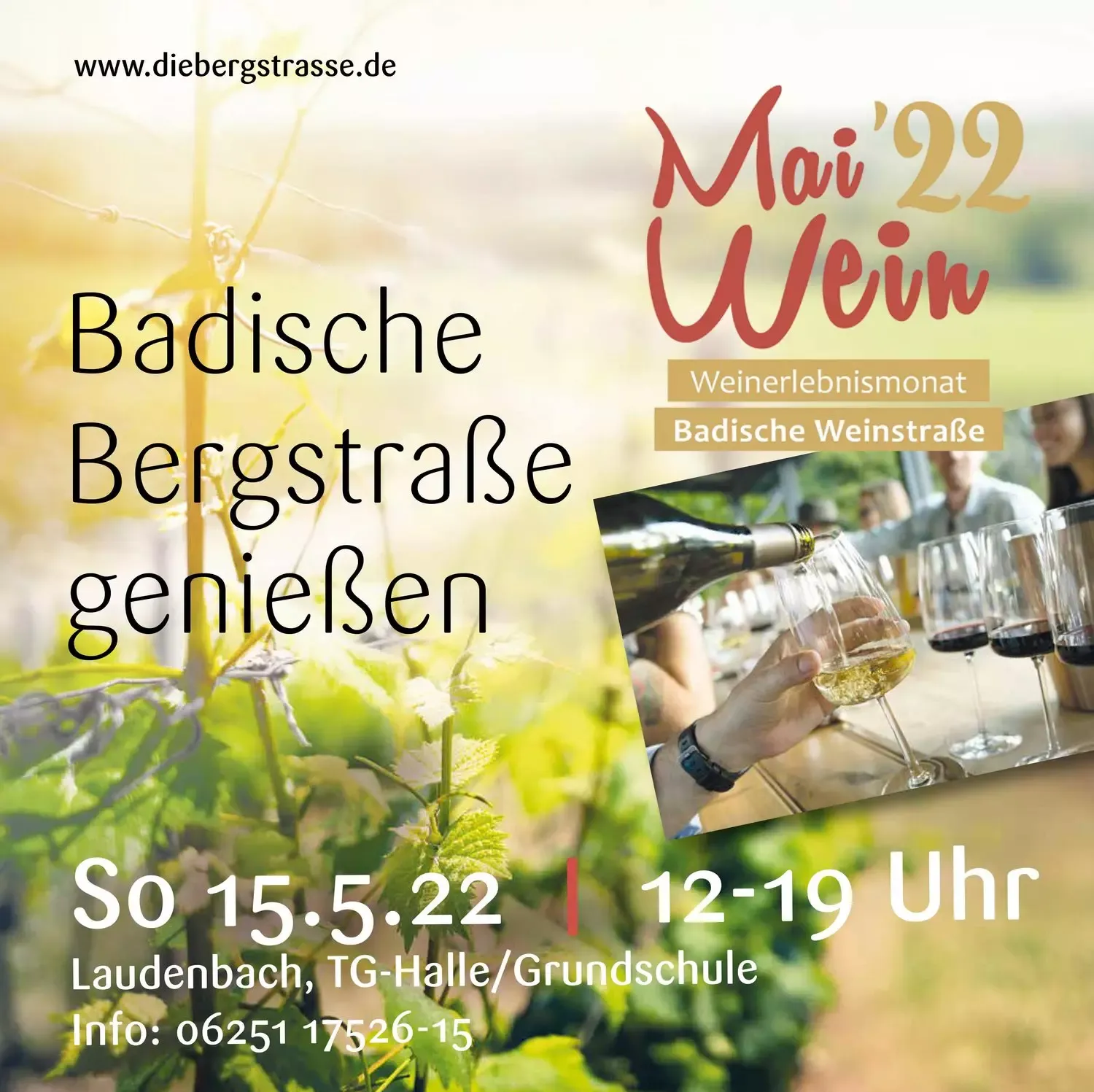 Besuchen Sie uns am 15. Mai in Laudenbach! Hier werden wir im Rahmen der Veranstaltung "Bergstraße genießen" unseren Wein ausschenken.
