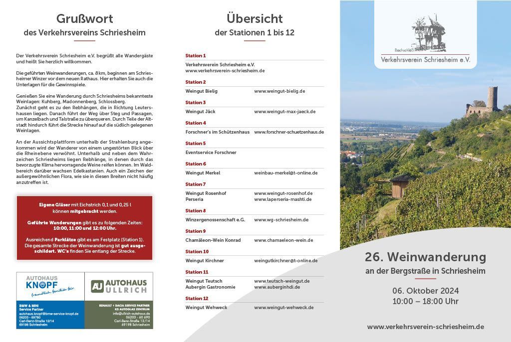 Am 1.2.2026 können Sie an unserem Stand bei der Rotweinwanderung in Schriesheim vorbeischauen.